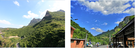 中午12點到達(dá)目的地,休整用餐后,開始游覽大峽谷景觀—景景相連,山靈水秀的谷中之谷桃花谷和擁有壯美風(fēng)光、百里畫廊之稱的太行天路。桃花谷內(nèi)黃龍?zhí)?、飛龍峽瀑布、飛龍峽棧道、九連瀑等景點珠聯(lián)璧合,顯示出深峽藏秀的悠遠(yuǎn)意境?!疤刑炻贰本皡^(qū)位于太行山之巔,全長約30km,一路望去,峽谷深邃、巖壁峭立,仿佛鬼斧神工,大氣磅礴。